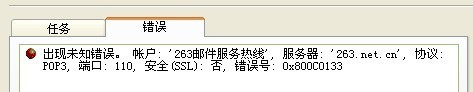 客戶端收發郵件返回報錯 “未知錯誤,0x800C00133”應如何處理?
